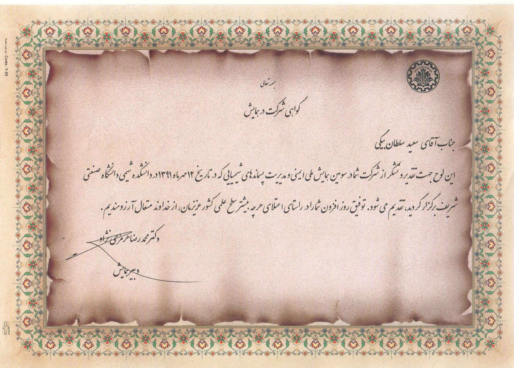 در پاییز همان سال دوره آموزش آشنایی با محصولات شرکت یوروتاف و پوشش پلی یوریا در مرکز فنی و حرفه ای برگزار گردید که من هم در این دوره شرکت کردم و آشنایی بیشتری با این محصول پیدا کردم . از ابتدای سال 1395 (بعد از تعطیلات عید نوروز) به دعوت مدیر عامل وقت شرکت پوشش برتر در کارخانه شرکت بعنوان مدیر فنی مشغول به فعالیت شدم و پس از گذشت 5 ماه و قطع همکاری ایشان با شرکت یوروتاف اسپانیا و عمل نکردن مدیران شرکت به تعهداتشان ( عدم راه اندازی آزمایشگاه کنترل کیفیت و نیز واحد تحقیق و توسعه ) از شرکت پوشش برتر جدا شدم.